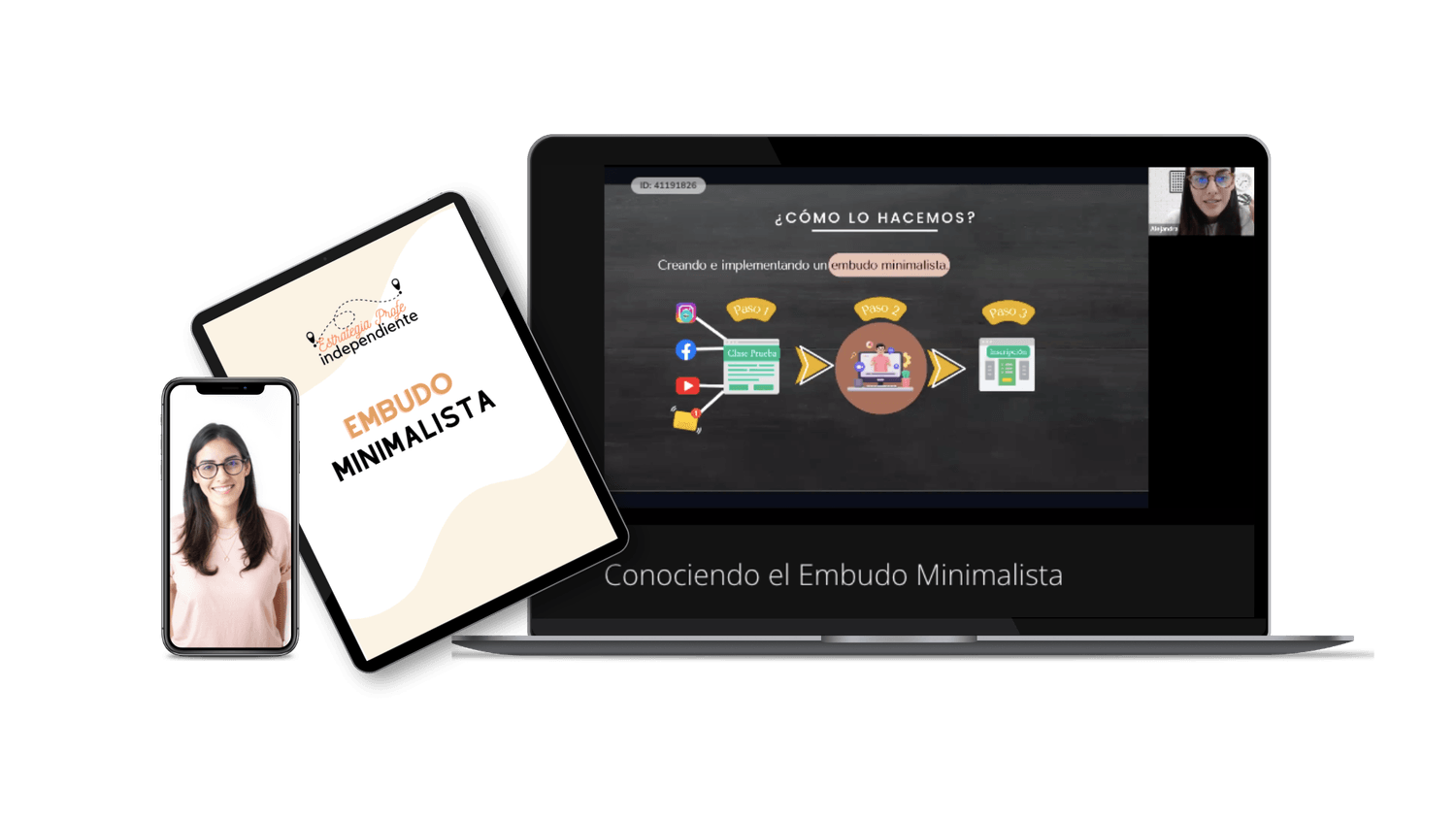 El más simple y estratégico del mercado, con el paso a paso para implementar tu embudo minimalista y ejercicios de claridad profunda, que te ayudarán a ordenar tus ideas, diseñar tu mensaje y guiar a tus seguidores hacia la inscripción de forma simple, clara y sin sentirte vendedor.